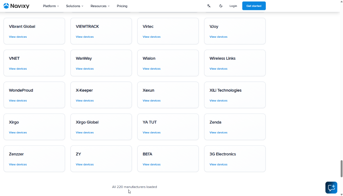 Универсальная аппаратная поддержка практически для любого устройства. Ознакомьтесь с нашим обширным каталогом GPS-устройств, систем отслеживания активов, видеорегистраторов, автомобильных видеорегистраторов и IoT-датчиков от ведущих мировых производителей, в данный момент поддерживается более 220 производителей оборудования.