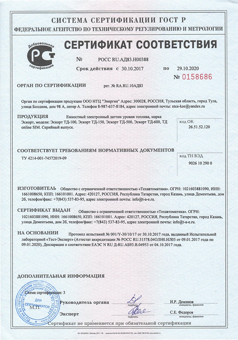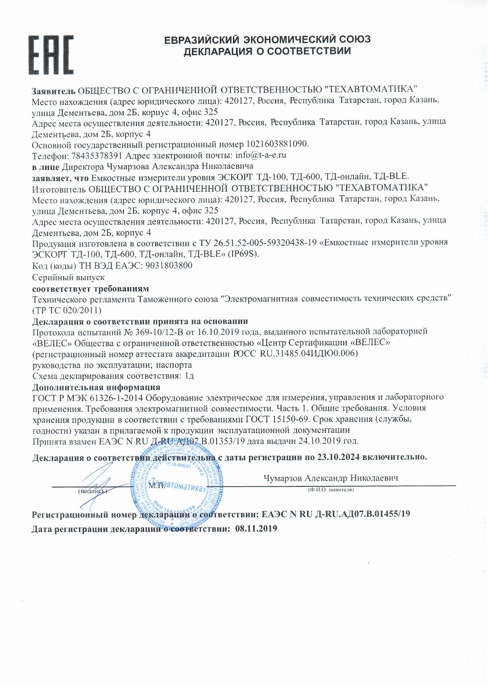 Универсальные датчики уровня и расхода топлива Эскорт.pdf9.9 Мб, 22 апреля в 13:35Декларация EAC.jpg511.3 кб, 22 апреля в 13:34Сертификат соответствия.jpg328.3 кб, 22 апреля в 13:34Сертификат EAC.jpg1.8 Мб, 22 апреля в 13:33Конфигуратор.zip22.8 Мб, 22 апреля в 13:33Паспорт_ТД-600.pdf674 кб, 22 апреля в 13:30Руководство по эксплуатации ДУТ Эскорт ТД.pdf13 Мб, 22 апреля в 13:30