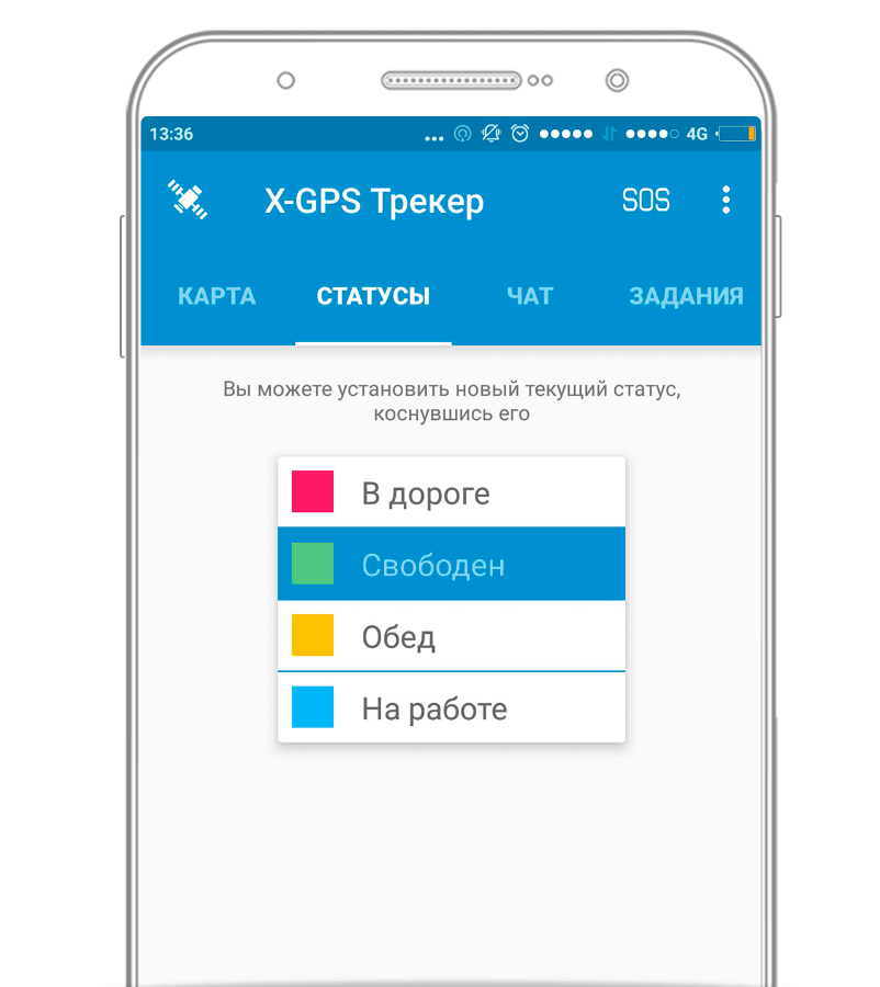Удобный способ отчетности. В несколько касаний, вы можете сообщить супервайзеру о готовности принять новый заказ. Выбирайте из списка нужный статус: “еду на объект”, “доставляю заказ”, “на обеде” и т.д.